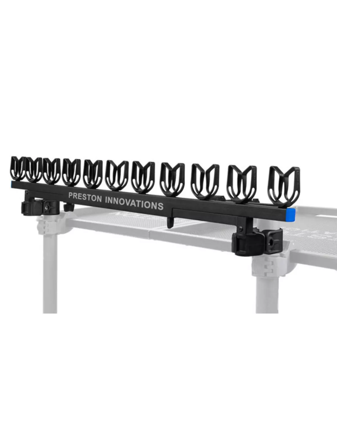 De Offbox 36 – Extending Gripper Roost van Preston Innovations is speciaal ontworpen om tot 11 topsets of hengels veilig op hun plaats te houden. De Extending Gripper Roost is voorzien van speciale steunen die de topsets vastklemmen, hierdoor blijven topsets in allerlei diameters goed vastgeklemd zitten. Dankzij het unieke uitschuifbare systeem kan de Gripper Roost op een groot aantal aastafels bevestigd worden.