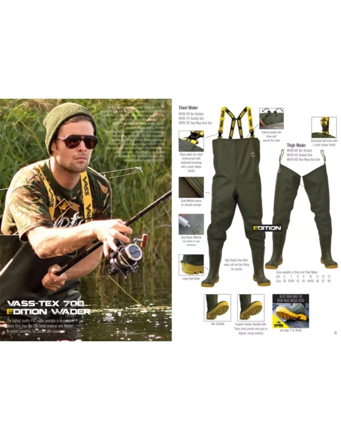 Als onderdeel van de voortdurende ontwikkeling van Vass zijn deze lieslaarzen nog sterker is geworden! De Vass-Tex 700E Nova heeft nu de toevoeging van de nieuwe versterkte ‘Vass Boot’. Deze laars heeft een bredere kuit en voet passend voor comfort. Dit Vass wader assortiment maakt gebruik van de hoge kwaliteit Vass-Tex 700 gladde PVC buitenzijde met een zachte polyester omgekeerde (lichte stretch voor comfort, maar ook fungeert als een schokdemper op de naden). Het lichaam wordt gefuseerd met onze nieuwe ‘Vass Boot’ Tough Chunky Geel Soled boot biedt comfort, betrouwbaarheid en hard versterkt dragen eigenschappen. Profiteert van de gebruikelijke hoge standaard van productie en materialen Vass van de Vass-Tex 700E Nova bevat ook functies zoals Quad-lasnaden, Elastiek & Box gestikt brace loops, Gemakkelijke reparatie materiaal (zie onze reparatie gids) en de interne trekkoord in de borst van de laarzen voor veiligheid en comfort. Hoewel niet zo hoog specced de Vass-Tex 740E SuperNova deze reeks biedt ongeëvenaarde kwaliteit tegen een uitstekende prijs.